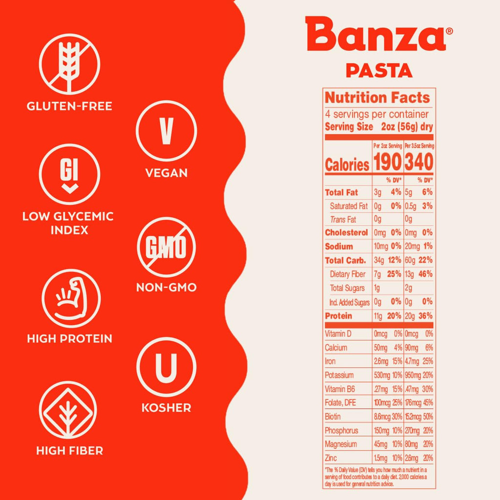 - Made with four simple ingredients, Banza gluten free pasta pairs perfectly with all the sauces you know and love, such as creamy vodka, garden-fresh pesto, and classic marinara.