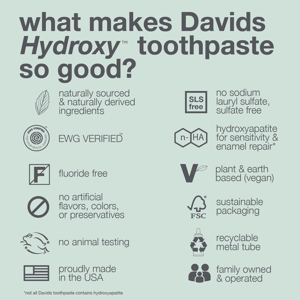 Davids Nano Hydroxyapaite Natural Toothpaste for Sensitivity | Peppermint | 5.25 Oz