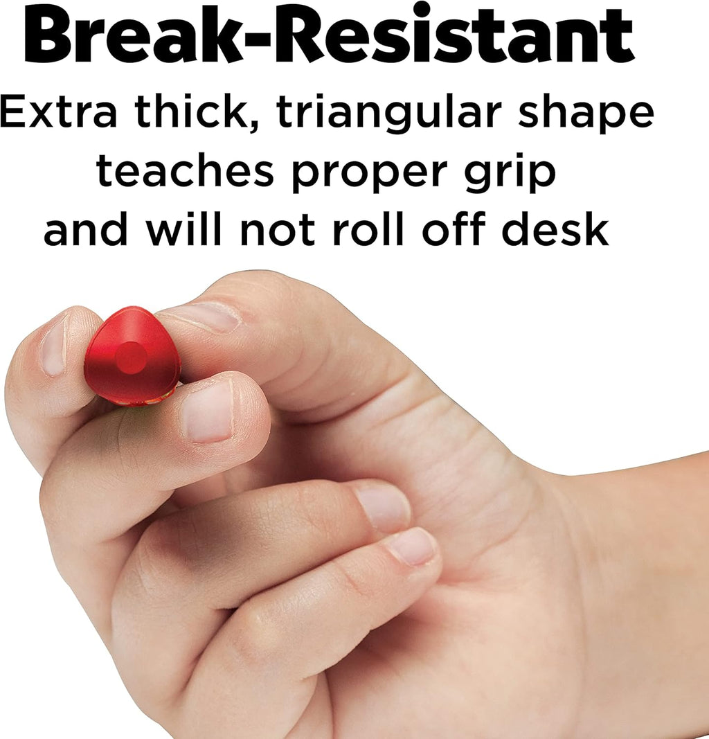 - SHAPED TO LEARN PROPER GRIP: Triangular shape allows little artists to learn the proper grip. Bonus - these jumbo crayons will not roll off the desk!