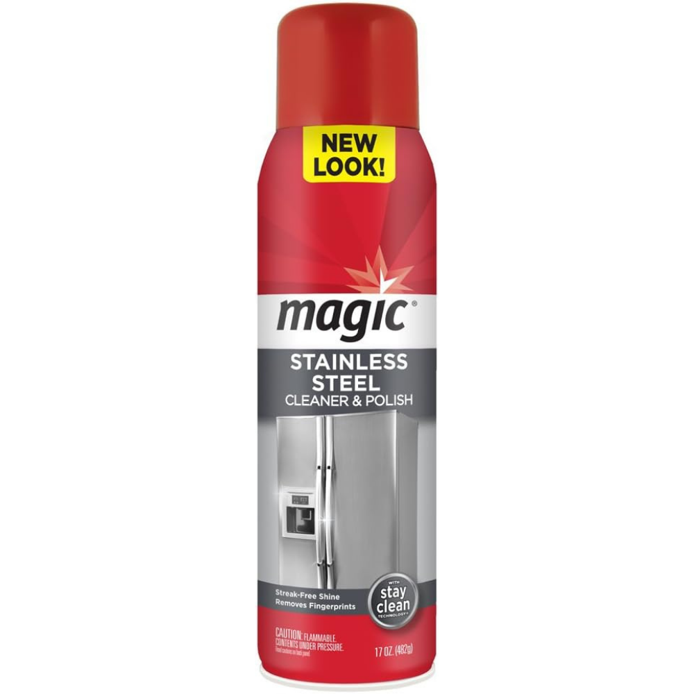 Keep your stainless steel appliances looking brand new with the Magic stainless steel cleaner & polish aerosol. This powerful formula cleans, polishes, and protects with every use, leaving behind a transparent, streak-free coating that repels dirt, dust, fingerprints, and water.