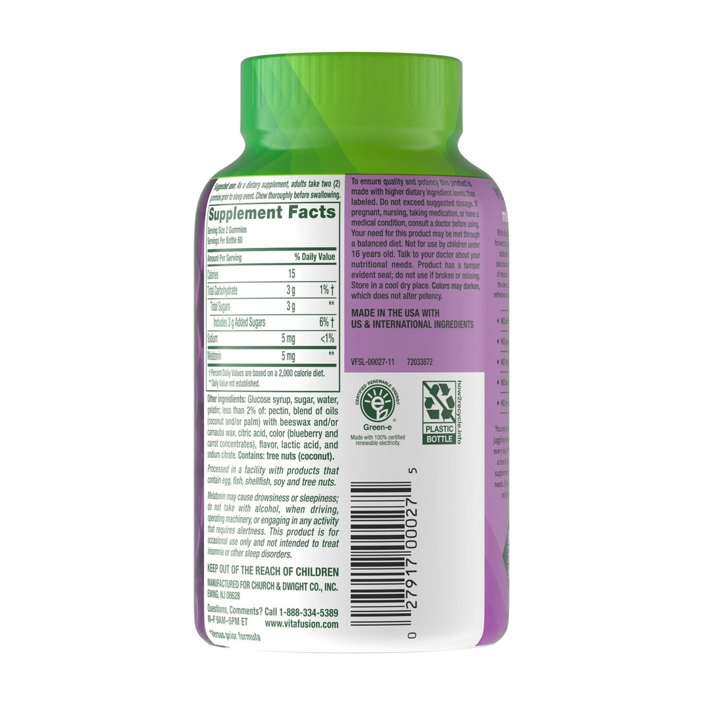- 120 count bottle of vitafusion Extra Strength Melatonin Gummy Vitamins, enough sleep supplements to last 60 days